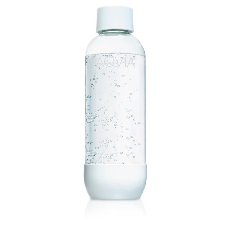 Plastflaske der blandt andet passer til Aqvia /AGA danskvand/ sodavandsmaskiner. Rummer 1 liter med hvid bund og låg. Tåler ikke opvaskemaskine.