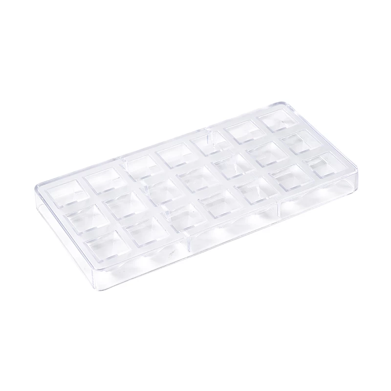 Blomsterbergs chokoladeform er en professionel chokoladeform i hård plast til fremstilling af hjemmelavede, støbte chokolader.