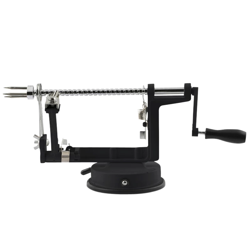 Hurtigt og nemt. Sæt æblet på, drej rundt og i løbet af ganske kort tid er æblet skrællet og udkernet. Skrællen i fine strimler kan bruges til dekoration. Sort