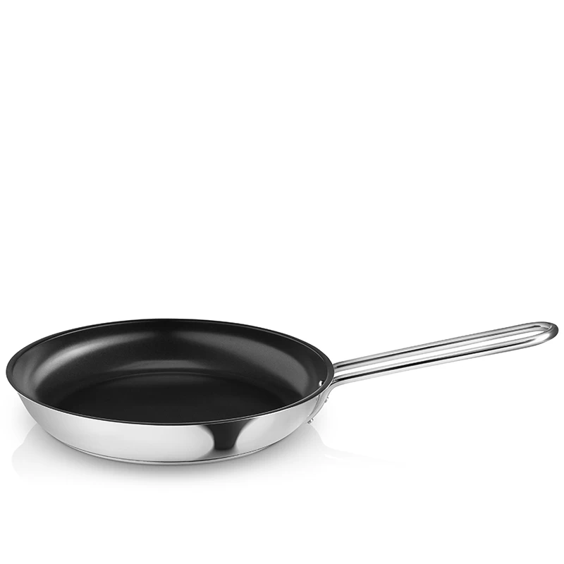 Den klassiske serie i rustfrit stål har i mange år indeholdt stegepander med og uden Slip-Let® belægning. Nu introducerer Eva Solo en stegepande i Rustfrit stål-serien med keramisk PFAS-fri Slip-Let® belægning. Der er tale om en ILAG keramisk Slip-Let® belægning, som tåler meget høje temperaturer, helt op til 400°C. Belægningen er derfor ideel til at stege kød, så stegeskorpen bliver helt perfekt. Stegepanden kan desuden gå i ovnen uden problemer. Gryder og pander i Rustfrit stål-serien er fremstillet af højglanspoleret 18/10 rustfrit stål. Det er et materiale af højeste kvalitet, som gør kogegrejet optimalt modstandsdygtig over for rust, giver stor slidstyrke og sikrer nem rengøringen. Stegepanden går på alle varmekilder inkl. induktion, og kommer i 4 størrelser.