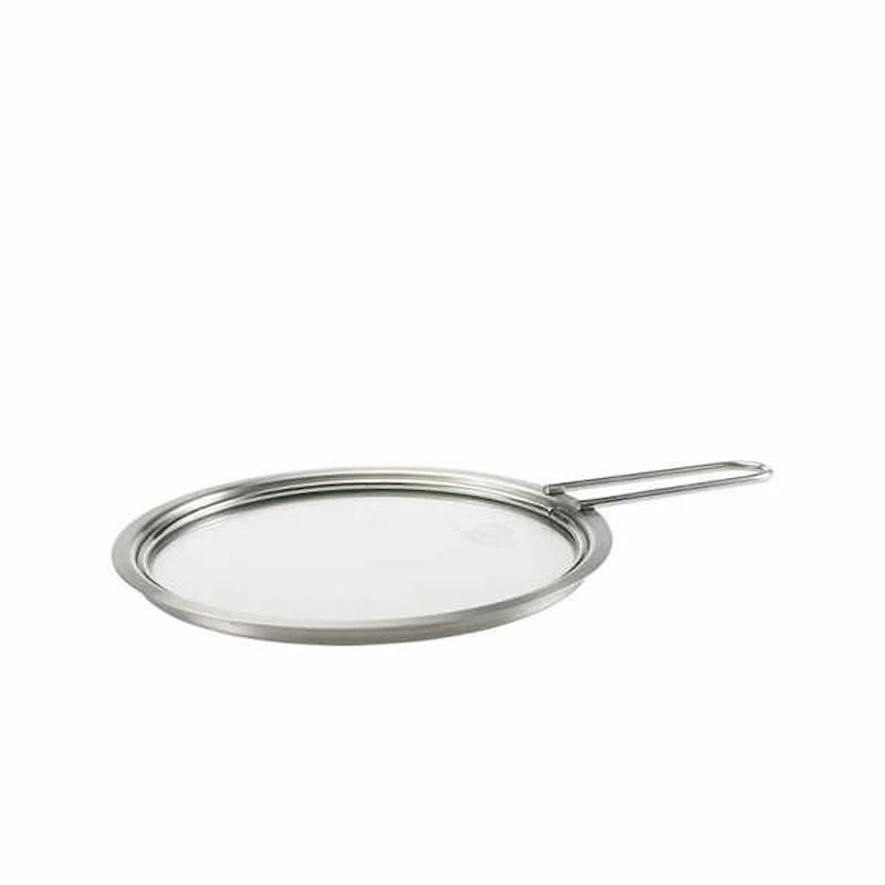 De flade tallerkenlåg i rustfrit stål kan stables inden i hinanden eller ophænges på kroge. Låget har “lange” håndtag anbragt på siden, så du kan se til maden uden at brænde dig. Under madlavning kan du holde ting varmt på låget. Tallerkenlåg med glas giver mulighed for at følge tilberedningsprocessen undervejs.