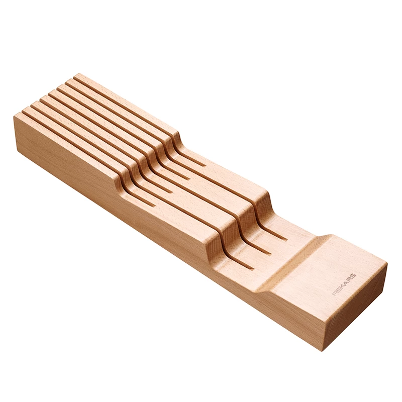 Pas ekstra godt på dine knive, så du har dem i mange år! Fiksars er lavet denne smarte og funktionelle knivblok i FSC-certificeret bøgetræ, som passer perfekt ned i køkkenskuffen. Dine knive vil takke dig for at blive opbevaret i knivblokken i stedet for løst nede i køkkenskuffen. Når dine køkkenknive ligger løst nede i skuffen udsættes de for unødvendig slid. Knivblokken passer på dine knive og beskytter dem imod at blive sløve eller ødelagte.