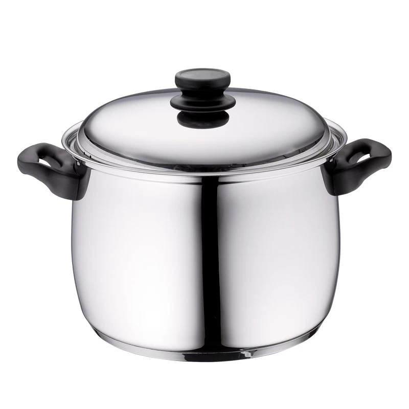 Raadvad skifter navn til Fiskars men det er stadig den kendte Royal gryde. Med låg. I rustfrit stål. Kraftig sandwichbund. Med bakelitgreb som tåler op til 180 grader. Til alle komfurtyper også induktion