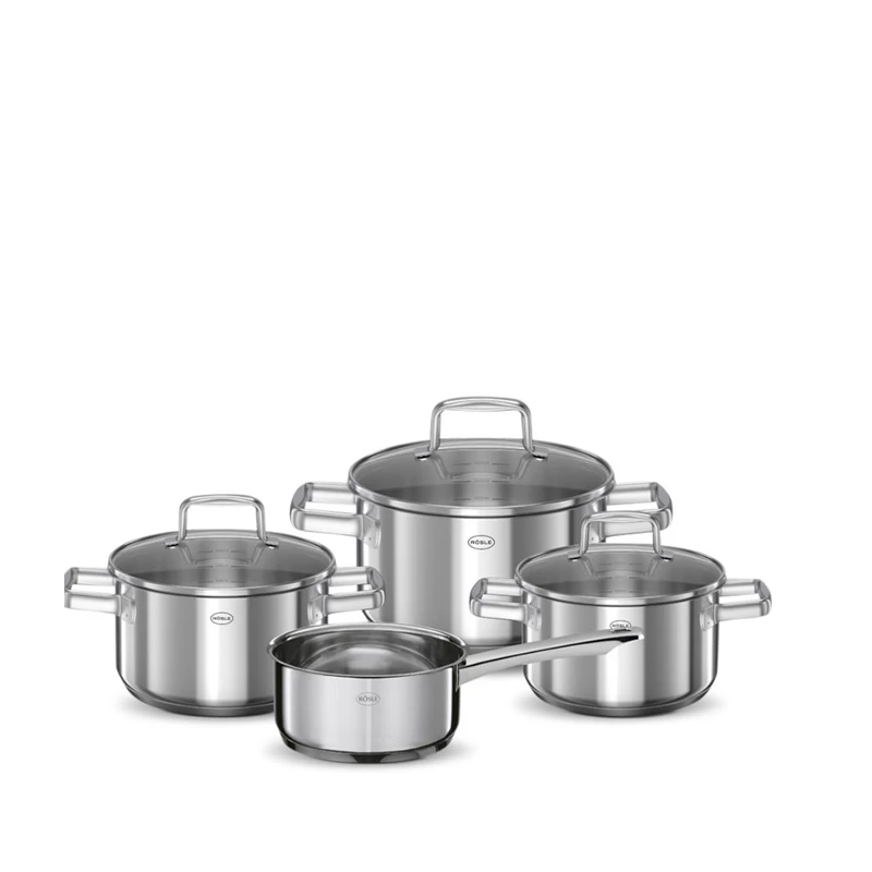 Sættet består af kasserolle 1,5 ltr., gryde 2 ltr., gryde 3,6 ltr. og gryde 5,8 ltr. Inkl. 3 låg.