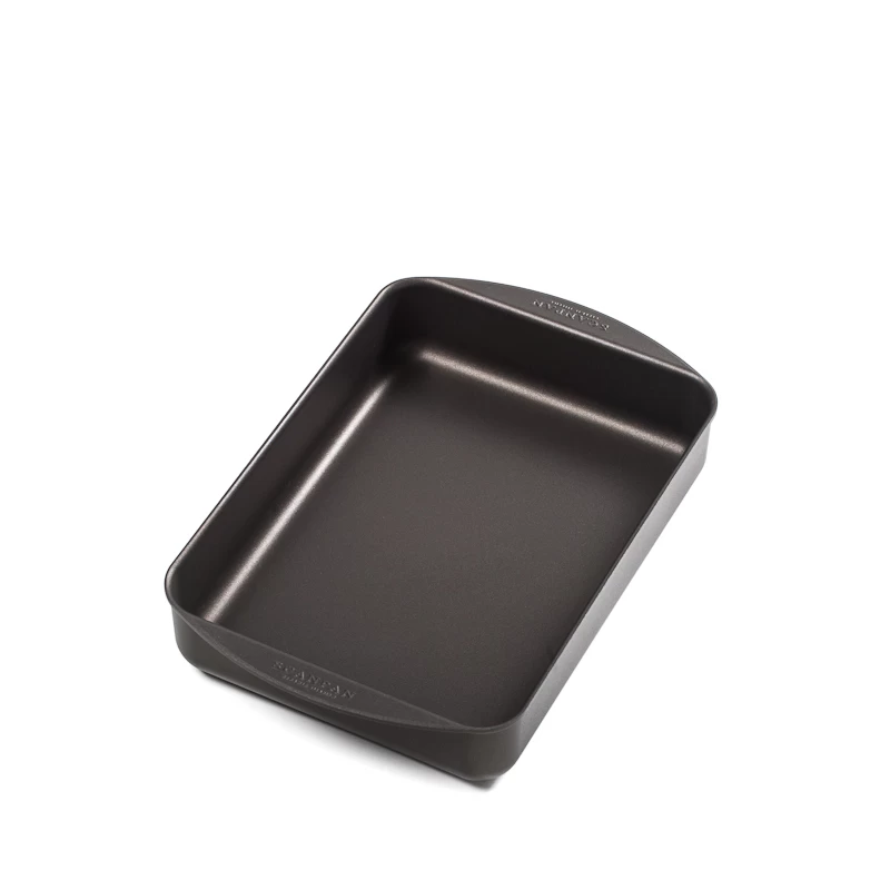 Hvilket køkken kan ikke bruge en god bradepande? Denne super funktionelle allround bradepande fra Scanpan har et hav af anvendelsesmuligheder, da den takket være sin særlige “stegepandebund” faktisk kan anvendes i ovn (260 grader), på grill og direkte på komfuret. Det er bare smart! Du kan altså lave mad på komfuret og så lade maden færdigtilberedes i ovnen eller blot holde det varmt. Du kan også lave en lækker lasagne i bradepanden eller en svampet brownie, der får mundvandet til at løbe. Du kan også med fordel tilkøbe en rist og låg til bradepanden, så du får endnu flere anvendelsesmuligheder. Både rist og tilhørende låg kan tilkøbes her på siden. Panden er belagt med non-stick belægning, og skal blot rengøres med varmt vand og sæbe. Et lille godt fif til vedligeholdelse af din non-stick belægning er, at du undgår hurtigt opvarmning samt nedkøling af bradepanden. Panden er håndstøbt i Danmark. Scanpan yder 5 års garanti på dette produkt.
