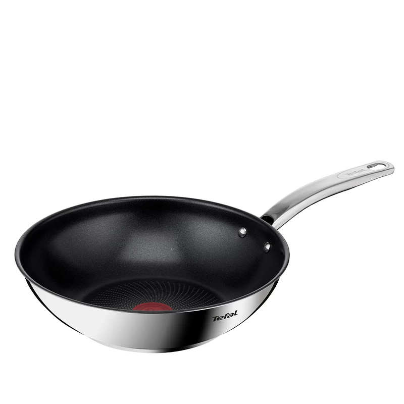 Tefal Intuition wokpande på 28 cm. er fremstillet af 18/10 rustfrit stål, der giver lang holdbarhed. Panden har Thermo-Signal(TM) som skifter farve, når temperaturen er optimal. Non-stick belægningen gør panden let at rengøre efter brug og er desuden fri for bly og kadmium. Wokpanden tåler også ovnvarme op til 210 °C og passer til alle varmekilder. Der er 5 års garanti på panden. Alt i alt en fantastisk wokpande som kan holde i mange år!