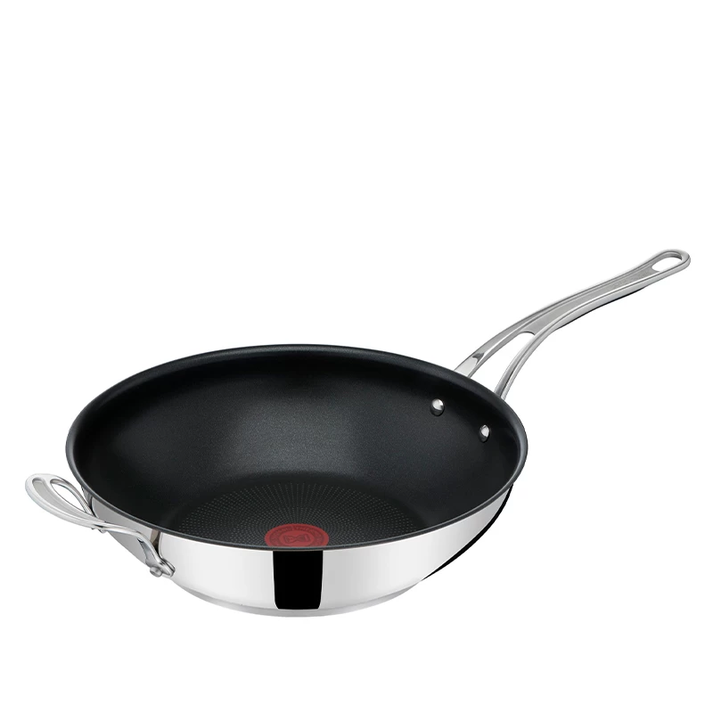 Vi kender alle Jamie Oliver, og hvis der er noget den kendte tv-kok har lært os danskere, så er det, at lækker mad slet ikke er så svært at lave! Derfor har Jamie Oliver samarbejdet med Tefal om at lave en lange række lækre, kvalitetsgryder og pander til hverdagskokken. I denne SS-serie (Stainless Steel) får du kvalitet i form af smukt design i rustfrit stål. Alle pander og gryder er så flotte, at du kan sætte dem på spisebordet og servere direkte fra dem. Alle gryder og pander i denne serie er belagt med non-stick uden PFAS eller andre kedelige stoffer. Desuden har alle panderne i serien det velkendte Thermo Signal udviklet af Tefal. Inden du tænder for varmen på din kogeplade, vil du kunne se et lille timeglas inde i det røde Thermo Signal. Når din pande har den perfekte stegetemperatur, vil timeglasset forsvinde, og du kan stege løs.